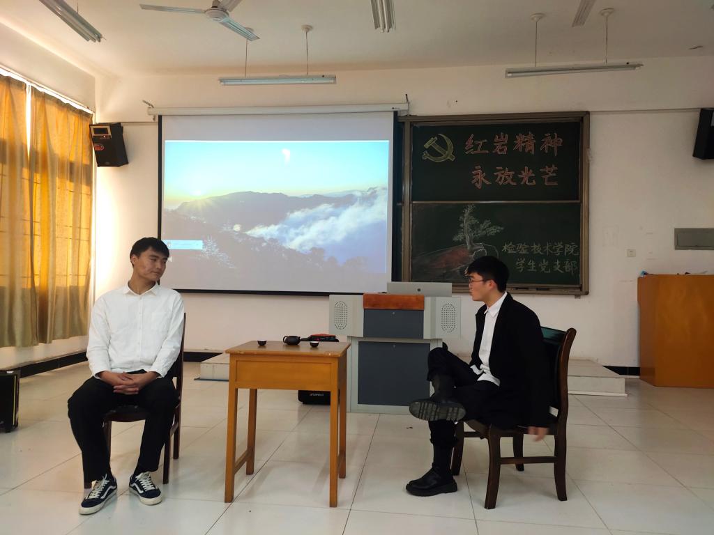 活动中,学生党员、发展对象、入党积极分子们声情并茂的讲红岩故事、唱红岩歌曲、颂红岩精神、演红岩片段。《江姐的故事》、《传承》等故事朗诵,《小萝卜头》等情景剧,《红梅赞》、《绣红旗》等独唱,《故事里的中国---红岩》等话剧,再现了关押在“白公馆”和“渣滓洞”的先烈们英勇无畏的革命精神,以及他们对共产主义的执着,对黑暗必将被打破、光明一定到来的坚信不疑。台下的师生时而静心聆听,时而鼓掌致敬,充满着对先烈们的崇敬和怀念。