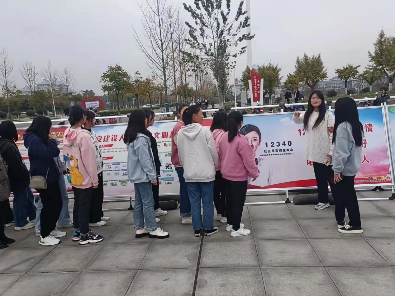 OK138太阳集团积极响应中共信阳市委关于平安信阳建设的决策部署,利用课余时间认真组织全院教职工和学生到学校明德广场观看政法宣传“进校园”活动图片展览。