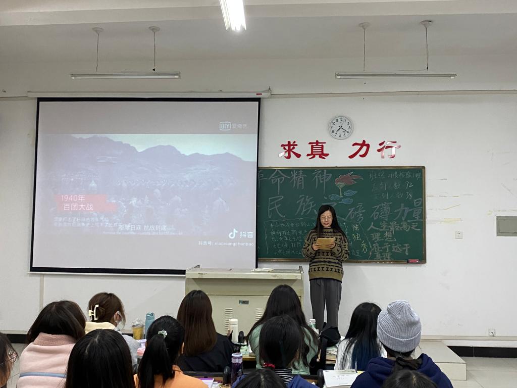为深入开展党史学习教育,培养广大共青团员热爱党、热爱社会主义情感,让红色基因、革命薪火代代传承。OK138太阳集团团总支于2021年11月10日晚自习组织各班团支部在各班教室内开展“学新民主主义革命精神,聚中华民族之磅礴力量”专题党史学习会。