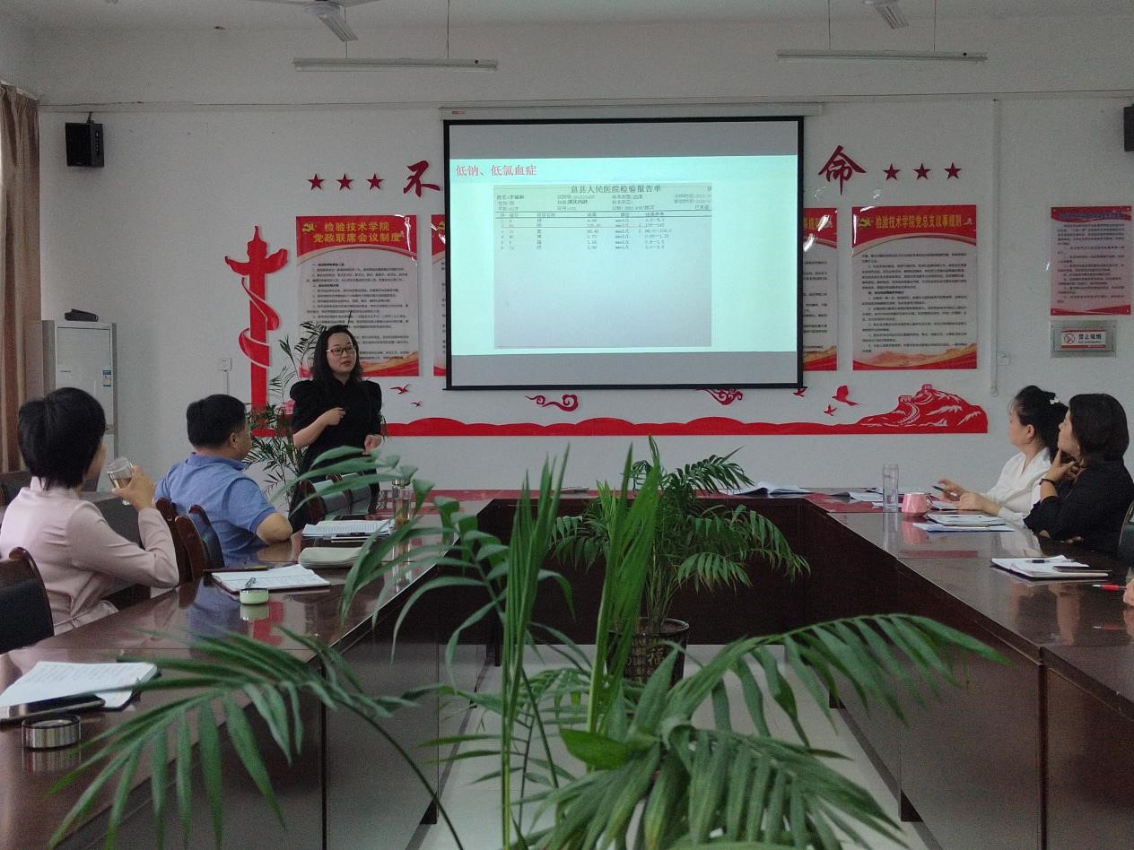 暑假期间,我院17位教师分别前往信阳市人民医院、ok138cn太阳集团附属医院、息县人民医院、平桥区疾控中心和信阳市师源检测技术服务有限公司进行为期2个月的企业实践活动。汇报会上,教师们分别从企业实践的内容、学习体会及对今后教学的思考等方面介绍所学所想所得。