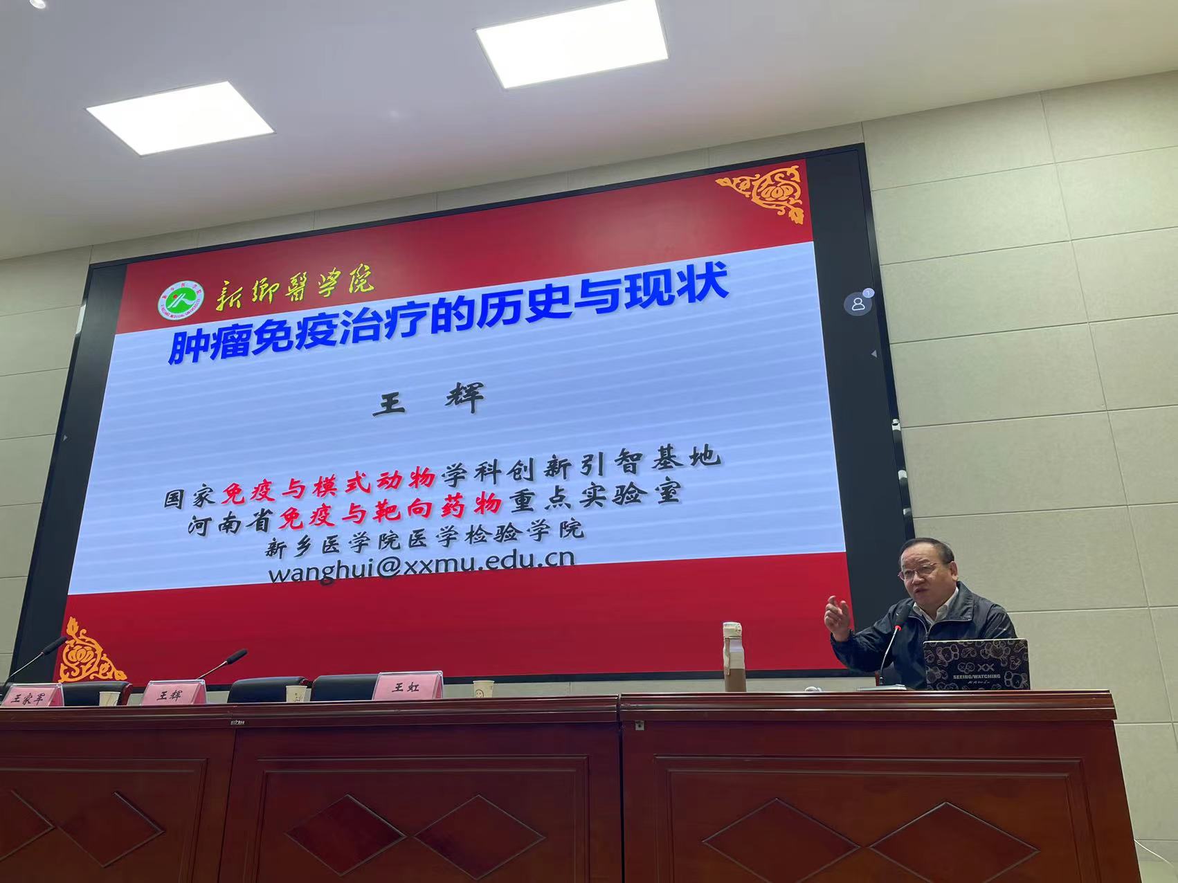 3月17日下午,新乡医学院副校长、王辉教授应邀到我校作学术讲座。王辉教授是博士研究生导师、中国免疫学会常务理事、科普与教育工作委员会副主任委员、国家免疫与模式动物学科引智基地负责人、河南省高等学校医学技术类本科教学指导委员会主任委员。王辉教授讲座的题目是《肿瘤免疫治疗的历史与现状》,学校副校长王家军、科研处处长万福成、OK138太阳集团党总支书记王虹、院长陶玲及OK138太阳集团、医学院师生共300余人参加了此次讲座。