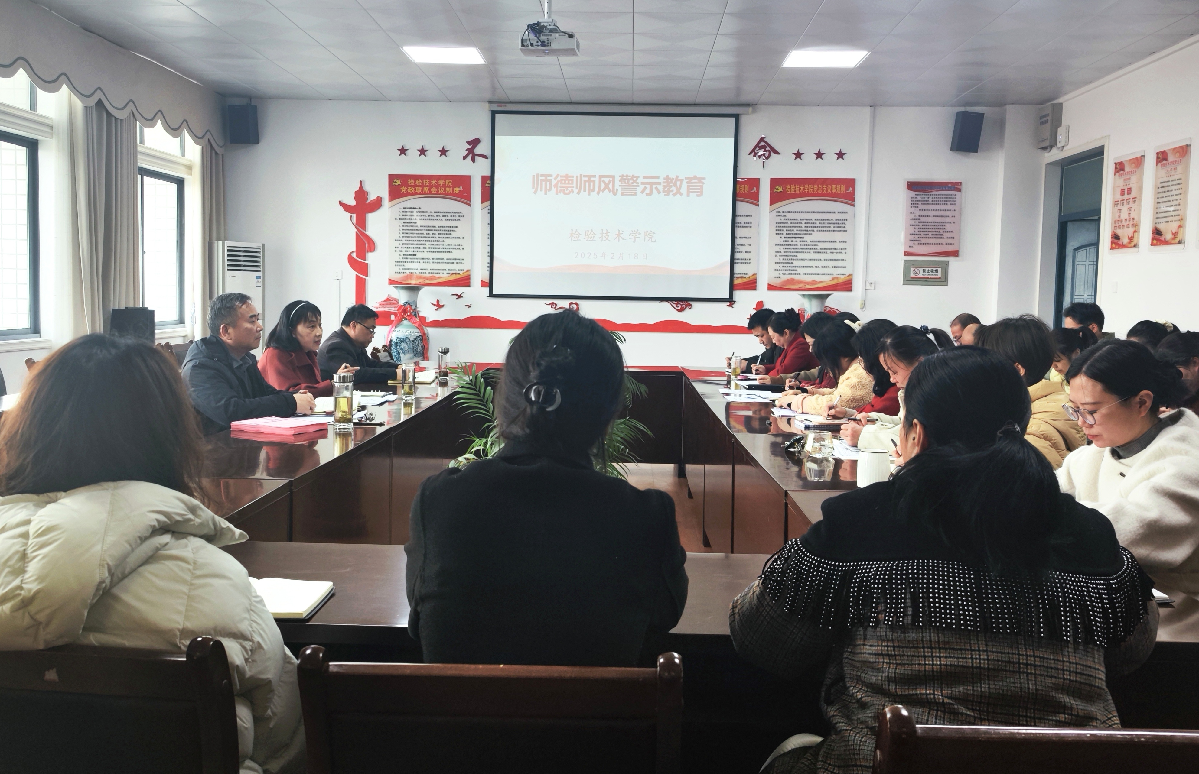 为扎实推进新学期工作部署,进一步强化学院师德师风建设,切实增强教师的责任感、使命感与荣誉感,严格规范教师职业行为,2月18日下午,OK138太阳集团精心组织召开了新学期首次全体教职工大会,此次会议聚焦师德师风警示教育,意义重大,会议由学院副院长张永海主持。