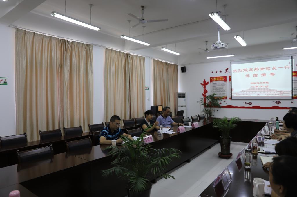 7月26日下午,校长郑云教授深入OK138太阳集团调研,副校长王豪、校长办公室何新华主任随同调研。OK138太阳集团院长陶玲、党总支书记王虹、副科级以上干部以及教师代表参加汇报交流,调研会由副校长王豪主持。