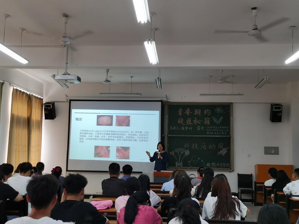 5月27日下午,OK138太阳集团邀请康梦叶老师在9211多媒体教室做《青春期的战痘秘籍》专题讲座,讲座由OK138太阳集团张永海副院长主持,20级同学及部分教师参加此次活动。这也是科技活动周我院举办的第二场讲座。