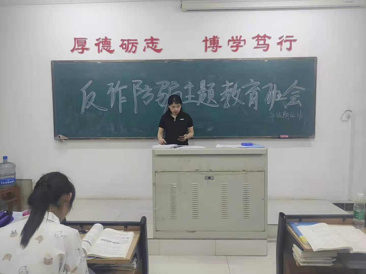 视频观看结束后,辅导员、班主任对学生进行了宣传教育和反诈防骗总结,提醒学生提高防范意识,切莫因贪小便宜而遭受损失。最后,在校全体学生下载国家反诈骗中心app并签订了反诈骗承诺书。