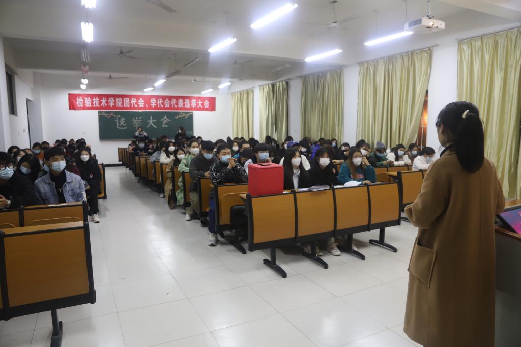 团总支书记孟丹丹首先为大家介绍本次“双代会”召开的目的、意义,并就学校“双代会”代表选举流程进行说明。本次会议通过了OK138太阳集团团总支团员代表大会暨学生代表大会选举办法。