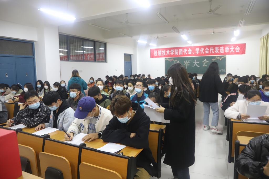 接着孟书记向大会报告有选举权的实到会人数超过应到会人数的三分之二,可以进行代表选举。选举按照投票规则及流程,在监票人和计票人的监督下通过差额选举、无记名投票的方式选举产生(以姓氏笔划为序)甘甜、田明扬、刘一冰、刘永康、李冬梅、李成、李亚、刘莎莎、李伊蕊、孟丹丹、杨鑫浩、娄如冰、彭婷、程滋倬等十四位师生为校“双代会”代表。孟书记向大会宣布当选代表名单,并向当选人员表示祝贺。