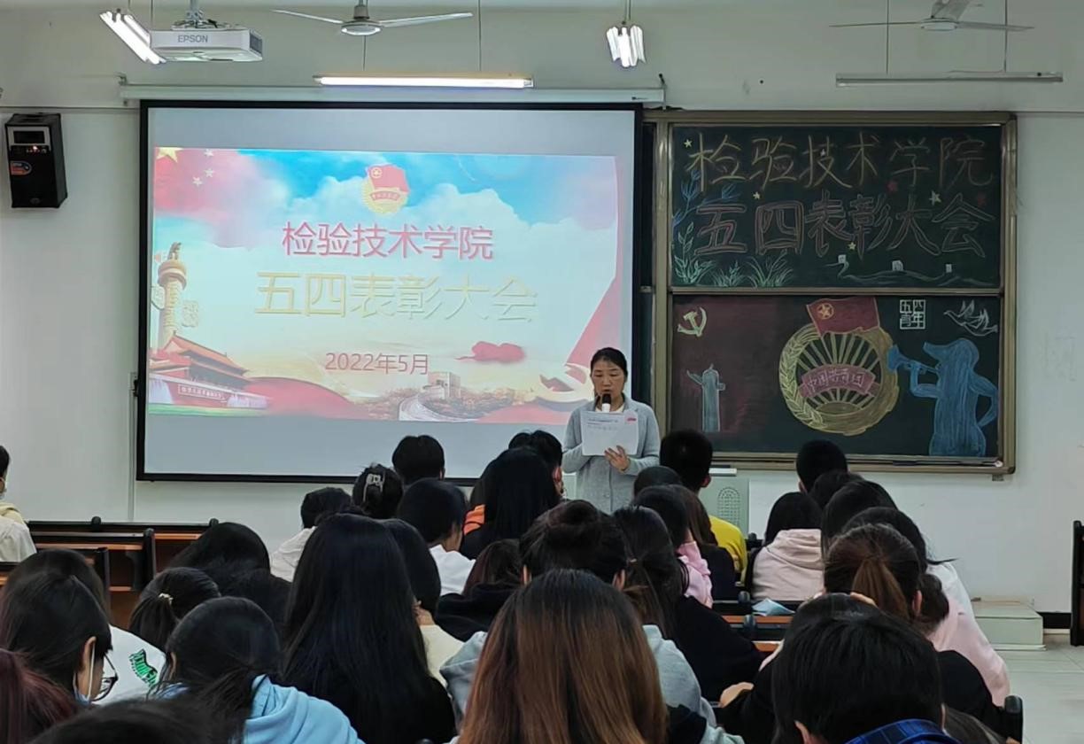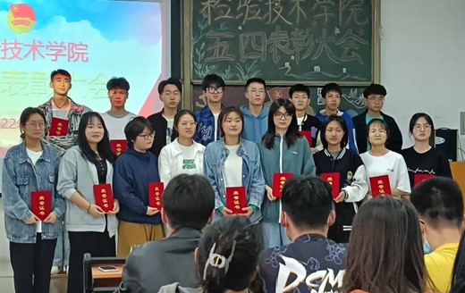 在雄壮的国歌声中,表彰大会开幕,团总支书记孟丹丹宣读2022年度五四评优表彰决定。此次表彰共评选出4个优秀团支部,优秀团学干部近40名,在喜迎党的二十大暨河南省科技文化艺术节线上展演节目选拔、歌唱青春暨庆祝建团100周年文艺汇演等活动中,共评选出105名优秀表演者。