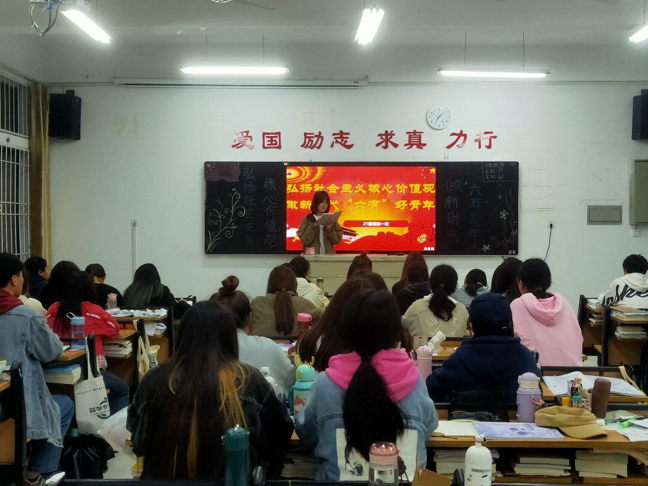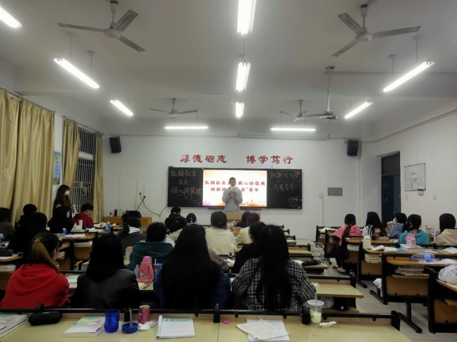 各班团支书向广大青年阐述了社会主义核心价值观及“六有”青年的概念和活动背景,“六有”概念即“有理想、有追求、有担当、有作为、有品质、有修养”。