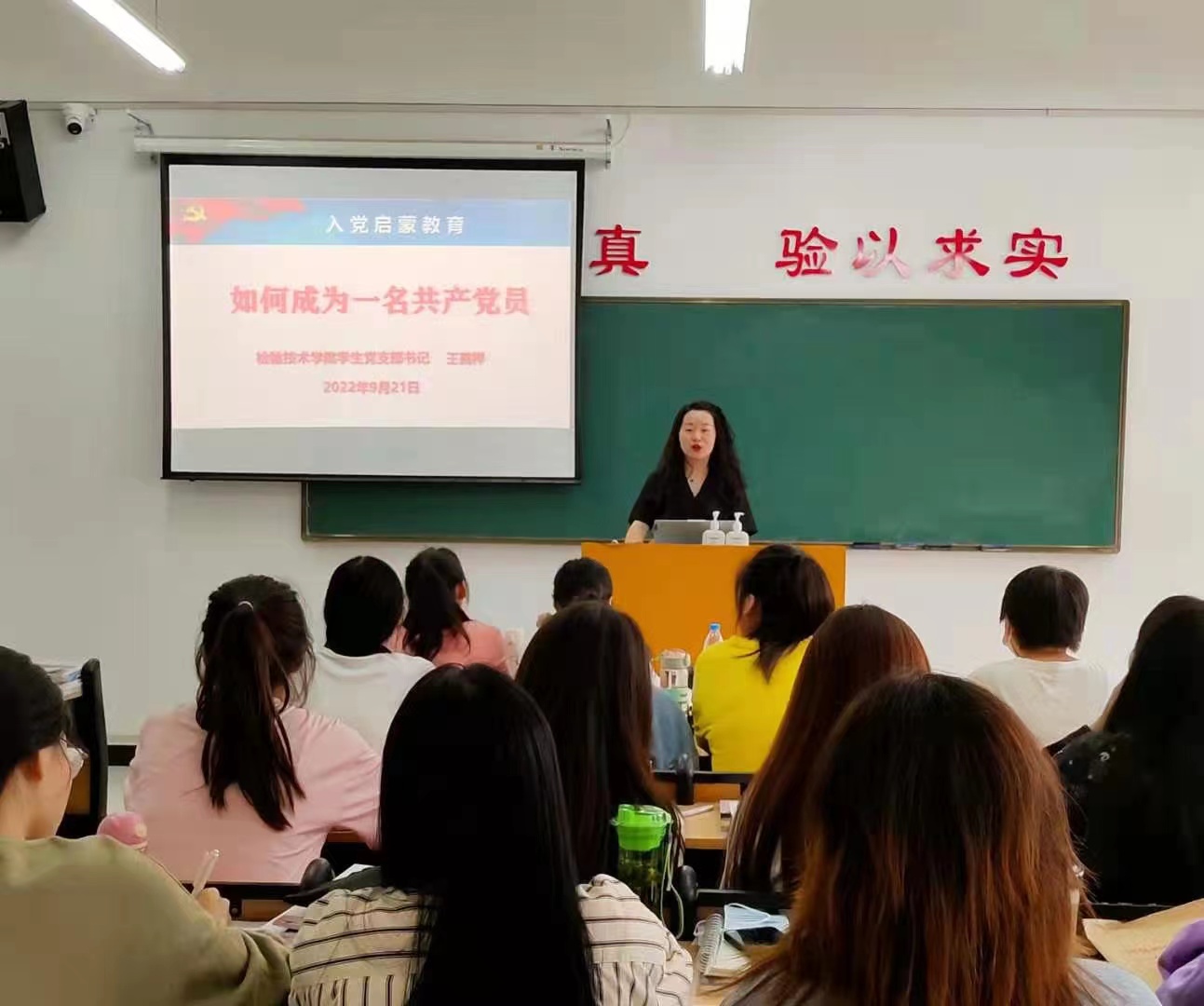 入党启蒙教育从优秀共产党员讲起,向大家展示了什么是中国共产党人的初心使命和精神风貌,使学生们深刻认识到中国共产党人肩负的责任与担当。之后从“谁可以申请加入中国共产党”、“如何撰写入党申请书”、“入党程序”等方面进行了详细的解说,并鼓励同学们用实际行动积极向党组织靠拢。随后,各新生班辅导员具体指导学生如何写入党申请书并审阅。