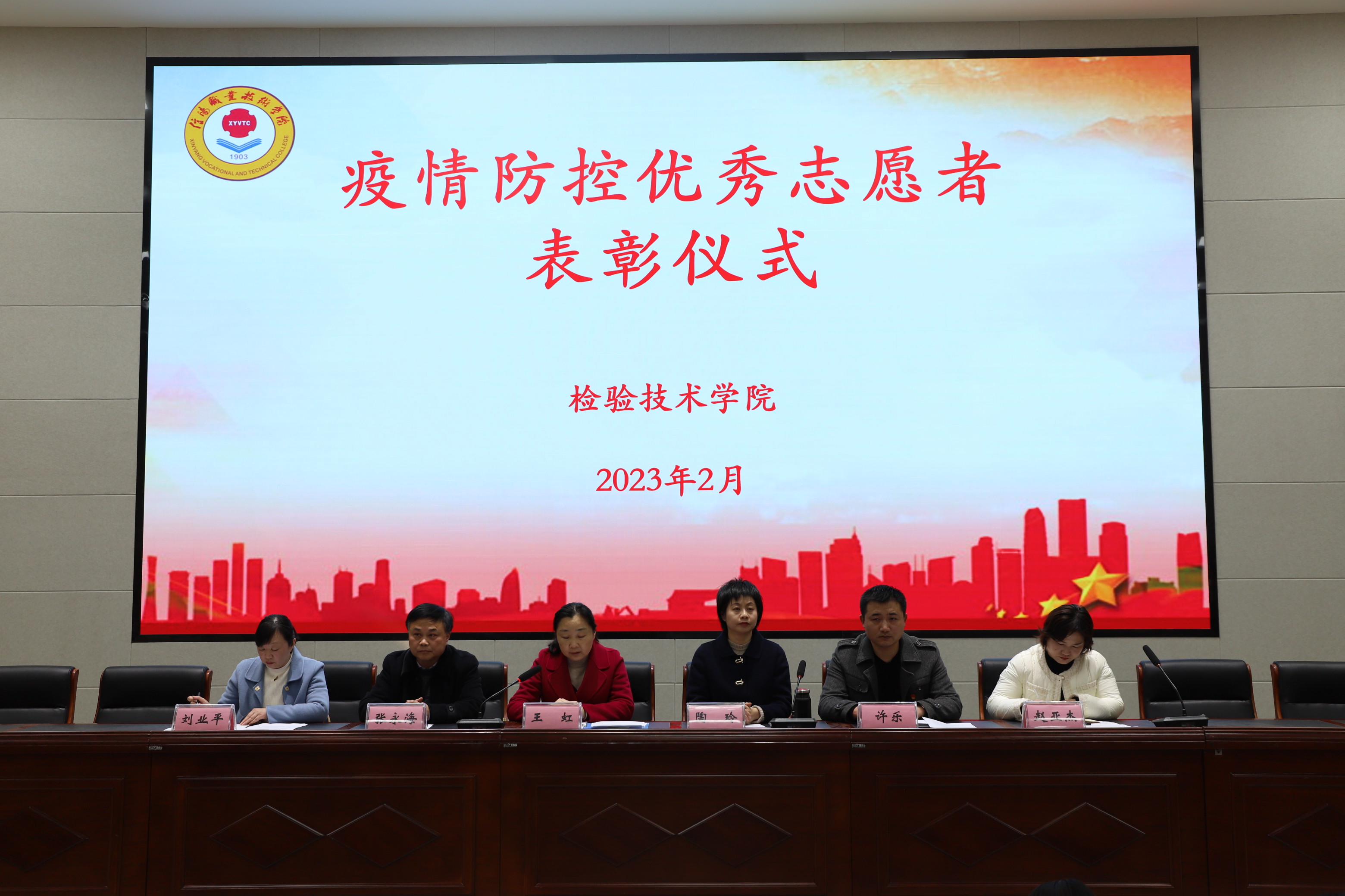 2月28日下午,OK138太阳集团在3107行知讲堂举行疫情防控优秀志愿者表彰仪式,OK138太阳集团党总支书记王虹、院长陶玲、副院长张永海、综合办主任许乐、学工办主任刘业平、教学办主任赵亚杰、全体辅导员(班主任)及疫情防控优秀志愿者等300余名学生参加了表彰仪式,本次仪式由副院长张永海主持。