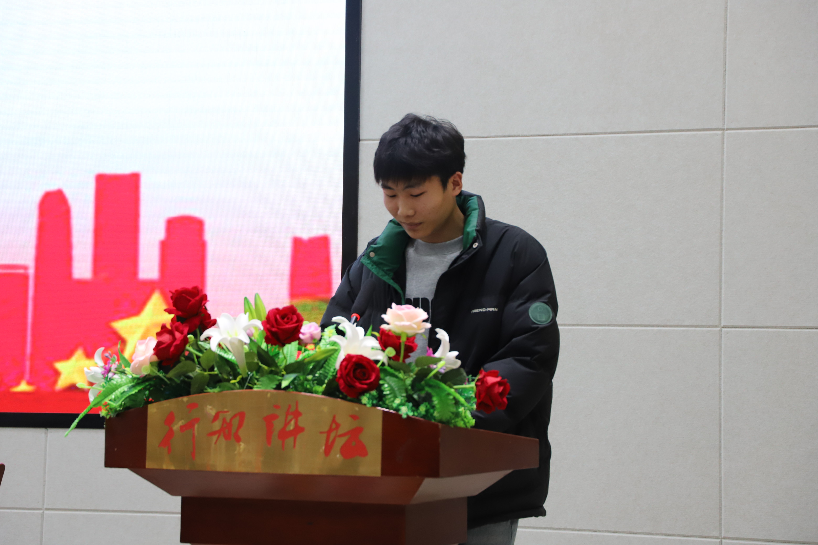 接着,由疫情防控志愿者优秀代表——21级医学检验三班赵明瑶同学发言,他在疫情防控志愿服务中深切的体会到了“青年立身须自强”、“助人者自助”的志愿服务精神和公共卫生工作的价值,增长了专业技能和人生阅历。同时表示在以后的志愿服务中也会不断鞭策自己,努力做到更好。