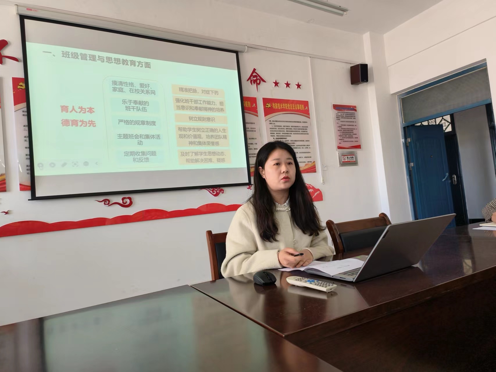 会上,9位辅导员、班主任踊跃发言。他们从育人工作中的思想政治教育、日常管理、班风建设、心理健康教育、宿舍管理、帮扶重点学生、安全教育、专业学习与职业规划、校园文化活动等多层面,进行了生动的交流分享,发言中既有围绕日常工作讲个人的工作经验,又有对特色工作、亮点工作讲思路,讲成效,谈体会。各位辅导员、班主任的育人汇报不仅展现了踏实的工作作风和较强的工作能力,更体现出了对学生和育人工作沉甸甸的热爱。