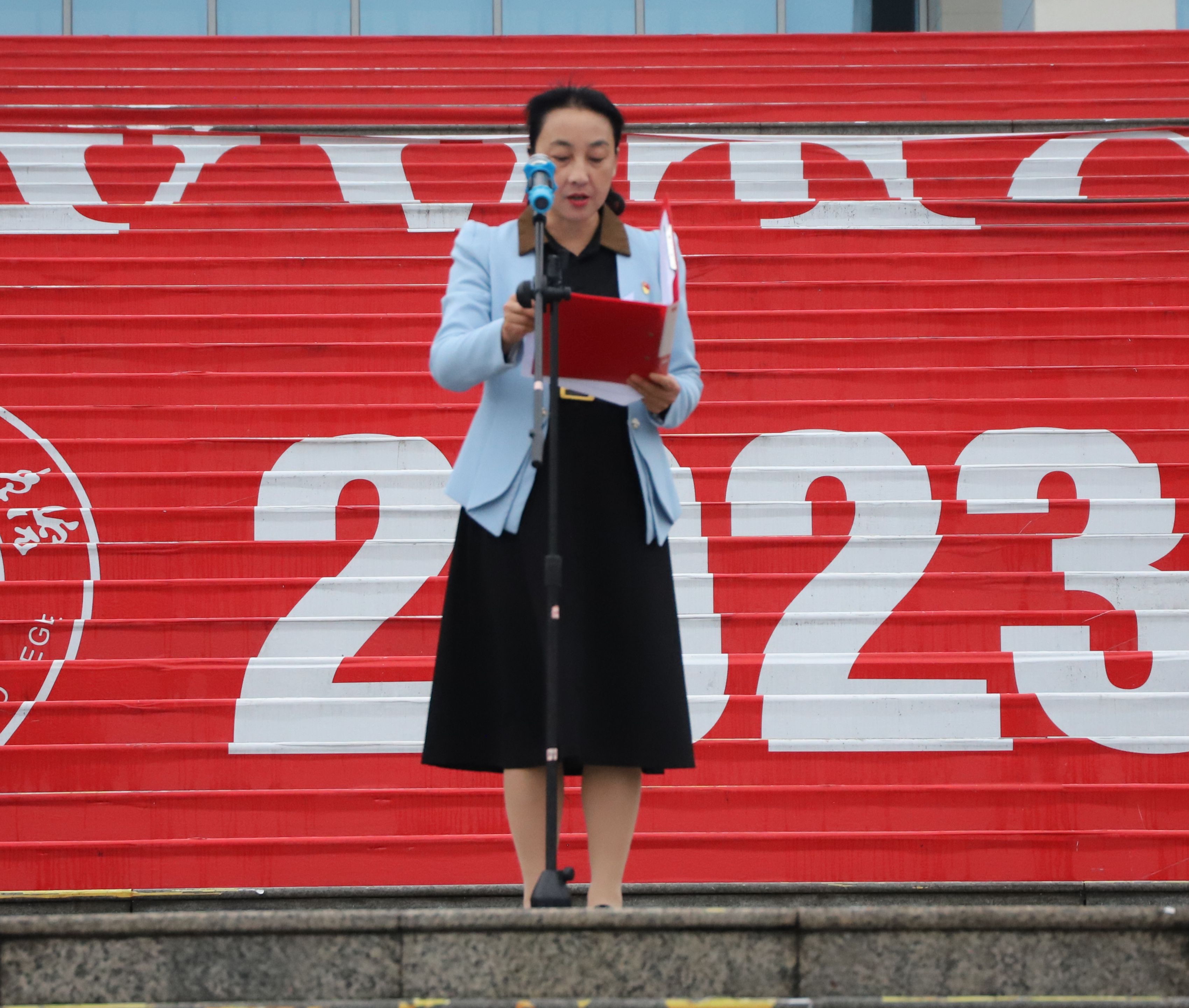 OK138太阳集团党总支书记叶桦在国旗下讲话。叶书记要求我们厚植爱国主义情怀,踔厉奋进,奋发图强!并对全院学生提出殷切希望,希望同学们有坚定的理想信念、有担当作为的闯劲、有吃苦耐劳的精神和团结奋斗的品质。