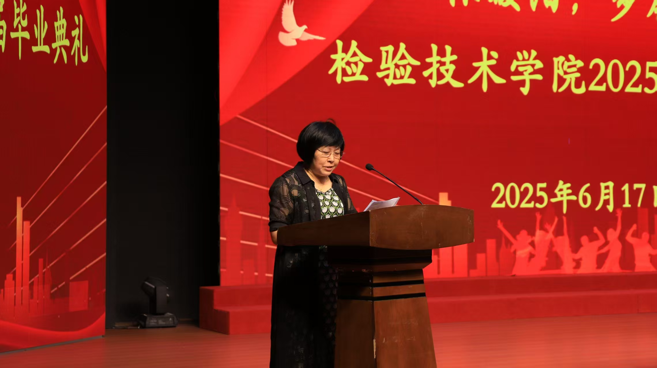 党委委员、副校长郑延芳代表学校向2025届毕业生致以热烈的祝贺。她深情回顾了同学们三年来在课堂学习、实训操作、技能大赛、志愿服务、校外实习的多彩生活。郑校长提出四点希望:一要矢志报国,坚定理想信念,让青春在现代化建设实践中绽放绚丽之花。二要恪守匠心,切实践行工匠精神,争当新时代大国工匠。三要终身学习,永葆求知热情,书写不负时代的人生篇章。四要胸怀大爱,善团结勇担当,争做有理想、肯奋斗的新青年。