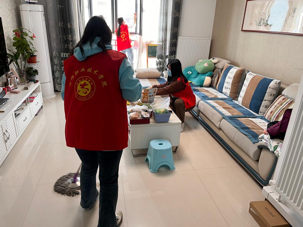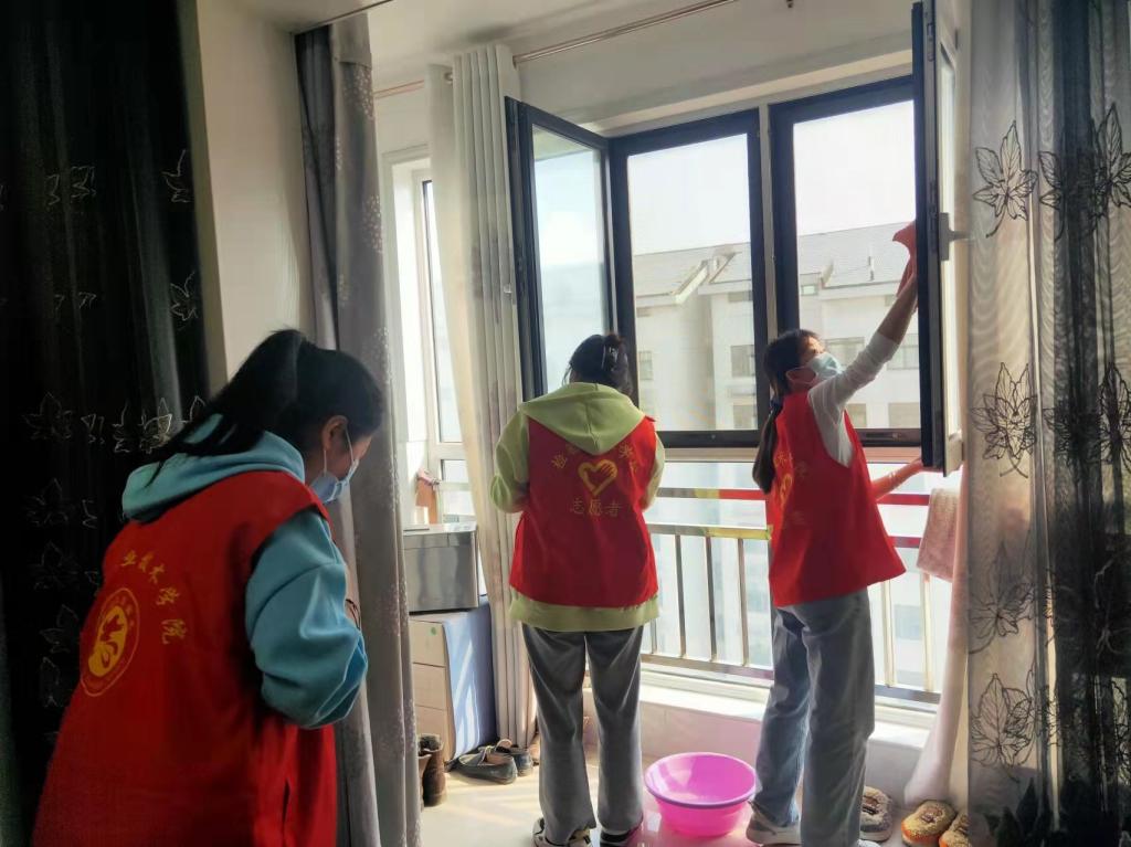 首先,志愿者们在田甜老师的带领下走进龙飞苑社区退休老教师郭阿姨的家。郭阿姨少时参军入伍,青年时期积极加入中国共产党,是一位有着50年党龄的退休老兵。志愿者们为郭阿姨打扫家中卫生、整理物品、陪老人聊天,用实际行动体悟雷锋精神的服务真谛。