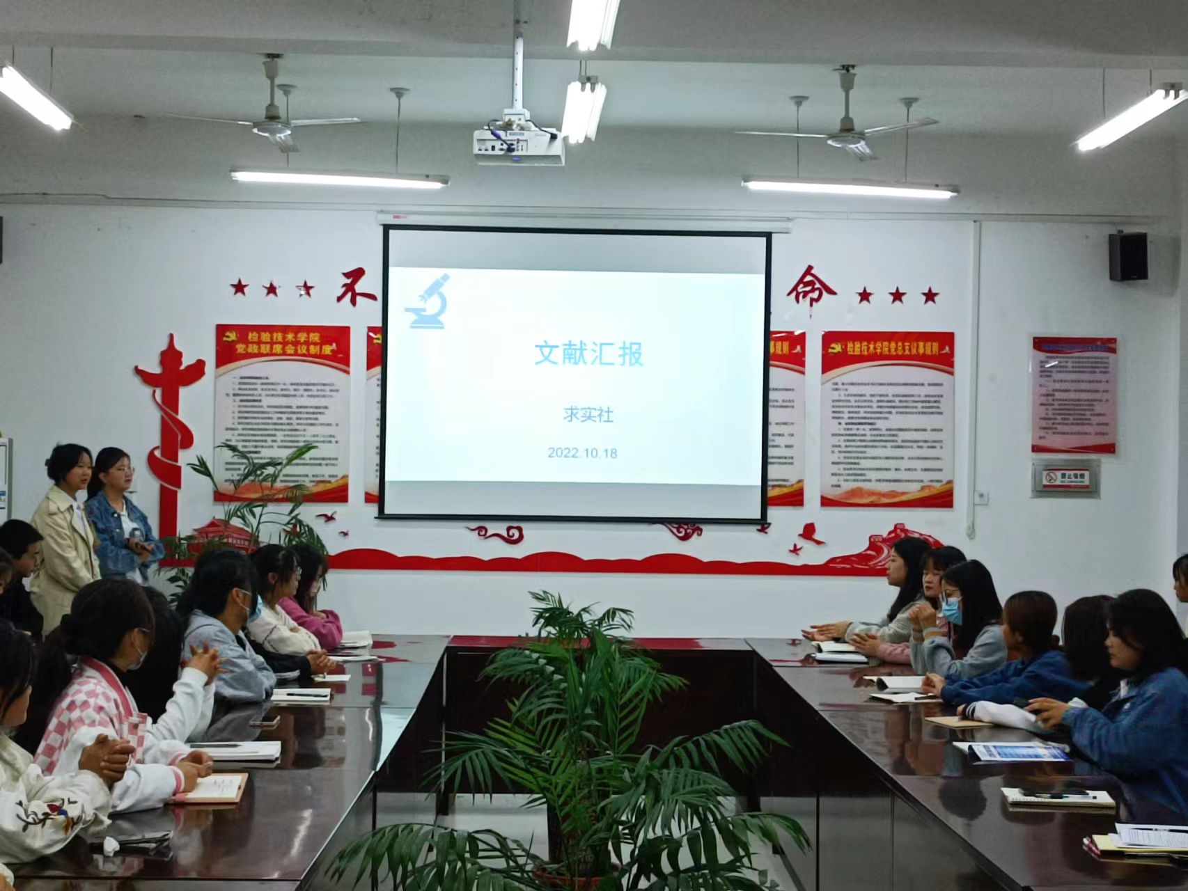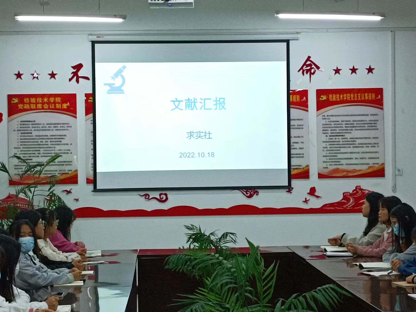 文献汇报是求实社的特色活动,不仅有助于锻炼社员们文献检索能力、语言整合和表达能力,还能够加深对专业知识的理解。