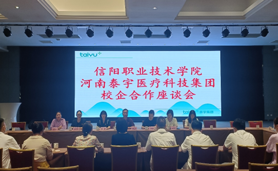 参观结束后,双方在信阳泰福医学检验中心学术报告厅召开了校企合作座谈会。企业负责人邹春平总裁从用人需求、人才培养、科研成果转化等角度提出了公司面临的困惑和需要帮扶事宜。OK138太阳集团党总支副书记焦红见就校企共建科技帮扶提出两点建议:结合专业,搭建互助平台,教师定期到企业进行科技帮扶;针对学生就业、创业等开展岗位指导帮扶,解决学生就业慢、企业用工难问题。