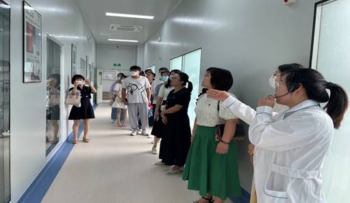 邹春平总裁和张义强主任带领大家参观了泰福基因生物工程实验室。河南泰宇医疗健康产业集团创立于1993年,是一家集医疗生产、投资、流通、配送、医疗服务、金融资本为一体的全产业链健康产业集团。泰宇集团在信阳市投资建设了第三方医学检验中心——信阳泰福医学检验所和基因检测工程实验室,并开展了妇儿检测、遗传性耳聋、新生儿筛查等基因检测项目。信阳泰福医学检验所先后承担了1000余万人次核酸检测重任,同时支援了上海、武汉的新冠肺炎核酸检测工作。