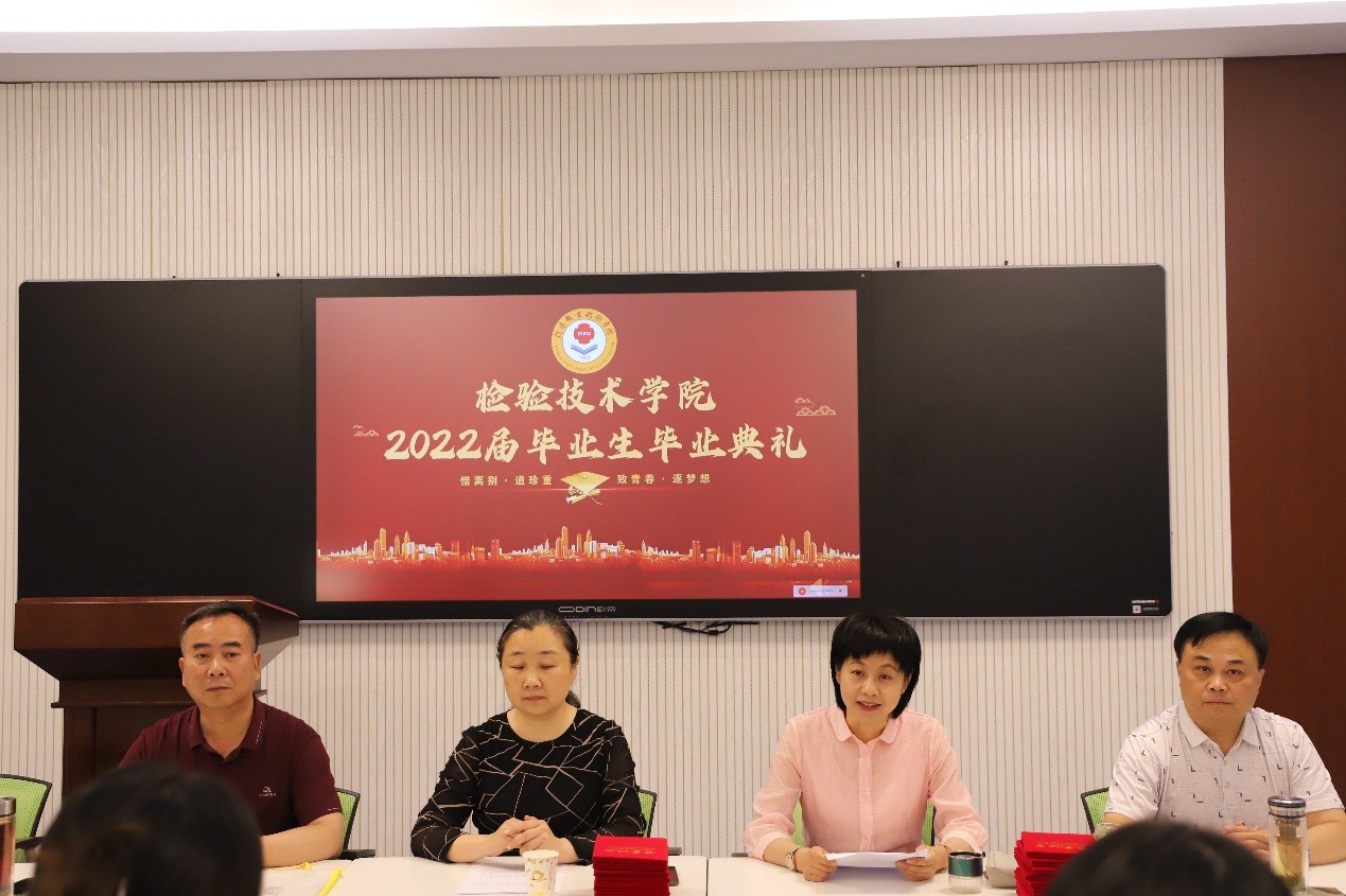 最后,学院党总支书记王虹讲话,王书记要求全体毕业生一要终身学习,二要永怀感恩,三要珍惜时间,四要珍惜友情。带上“检以求真,验以求实”的检验精神勇敢地走出去,把吃苦耐劳、砥砺奋进作为青春的“必修课”,勇于坚持、勇挑重担、勇克难关,以青春奋斗实现精彩人生!