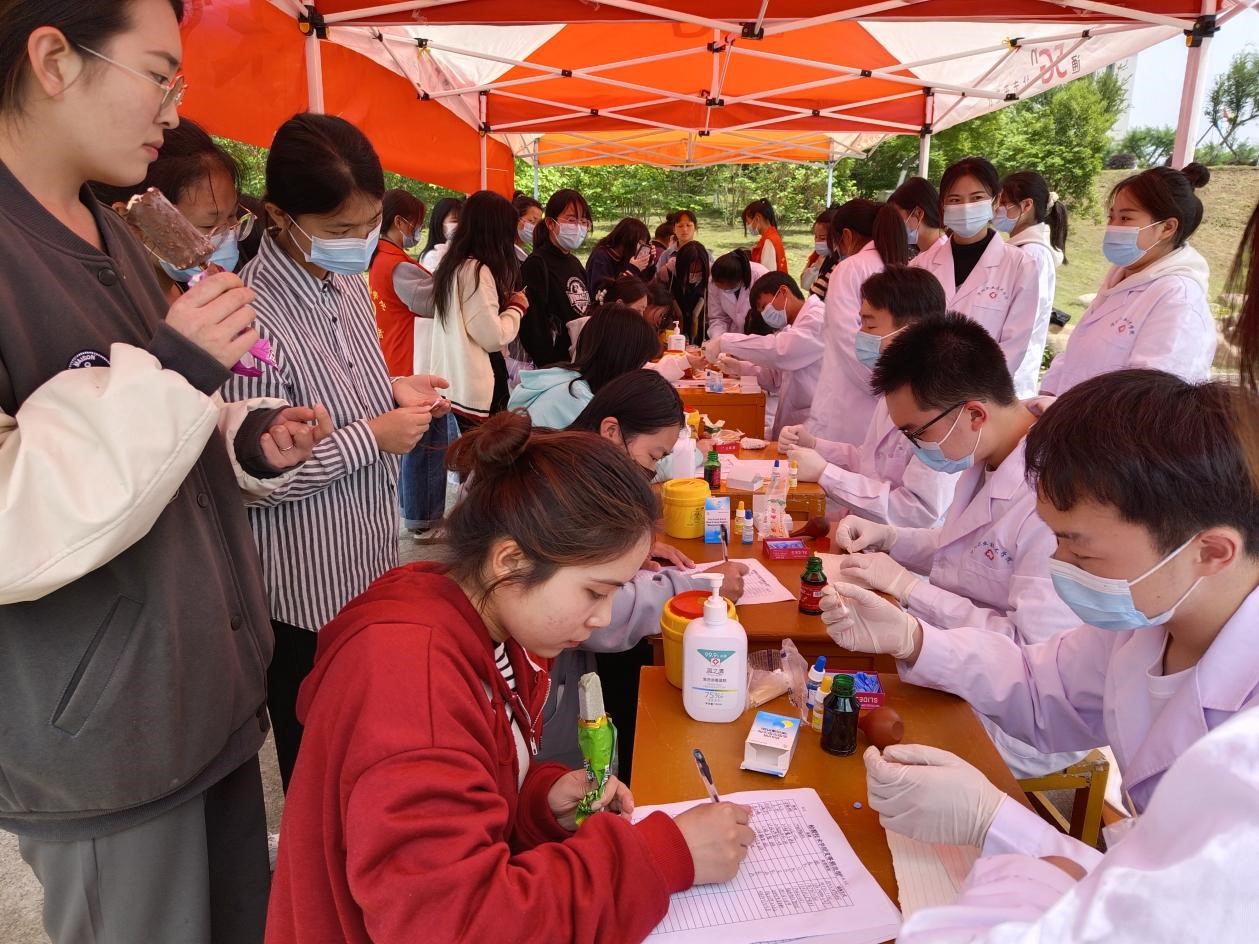 受助而自立,自强以反哺,4月29日中午,在OK138太阳集团党总支副书记焦红见、学生党支部书记王鹤桦、学工办主任刘业平的带领下,宋镜南、简洁雯、马丹等老师指导20多名国家奖助学金获得者及学生党员在学校思源大道旁,为在校师生进行义务测血型活动,利用所学专业知识志愿服务大家,得到了师生的广泛关注和积极参与。