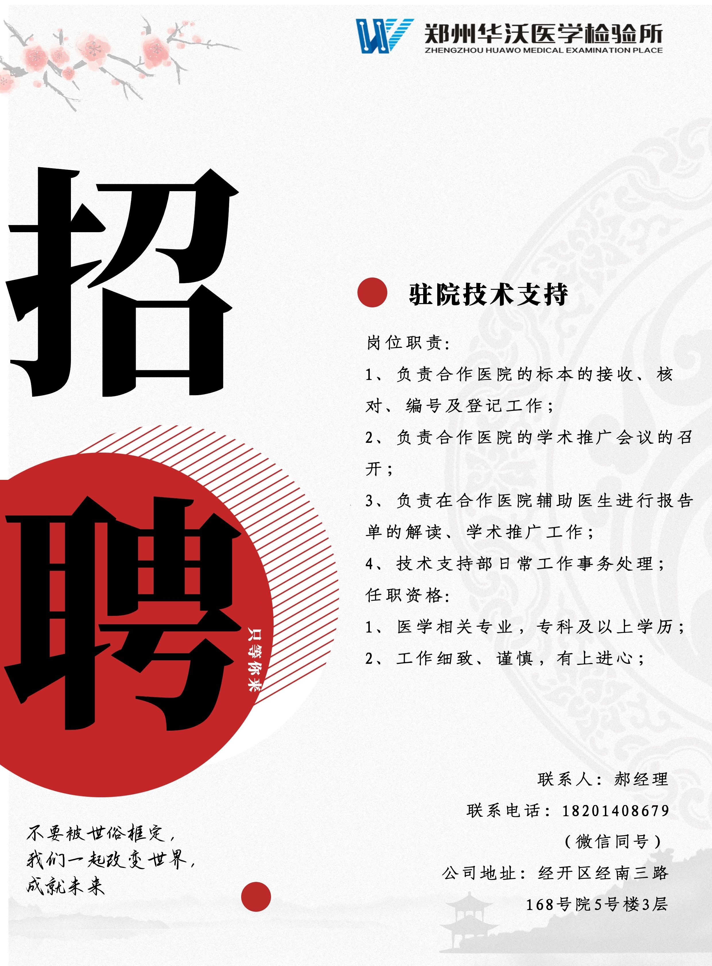 郑州华沃医学检验所招聘